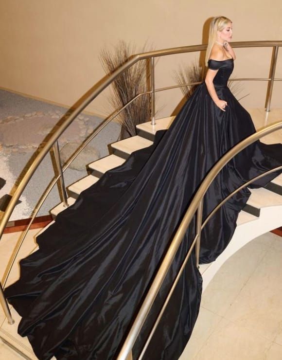 La empresaria, que utilizo dos cambios de indumentaria, lució en primera instancia un elegante vestido negro, diseñado por Gustavo Pucheta, con una fina tela satinada y una terminación con una cola que eclipsó a propios y extraños por el imponente tamaño.