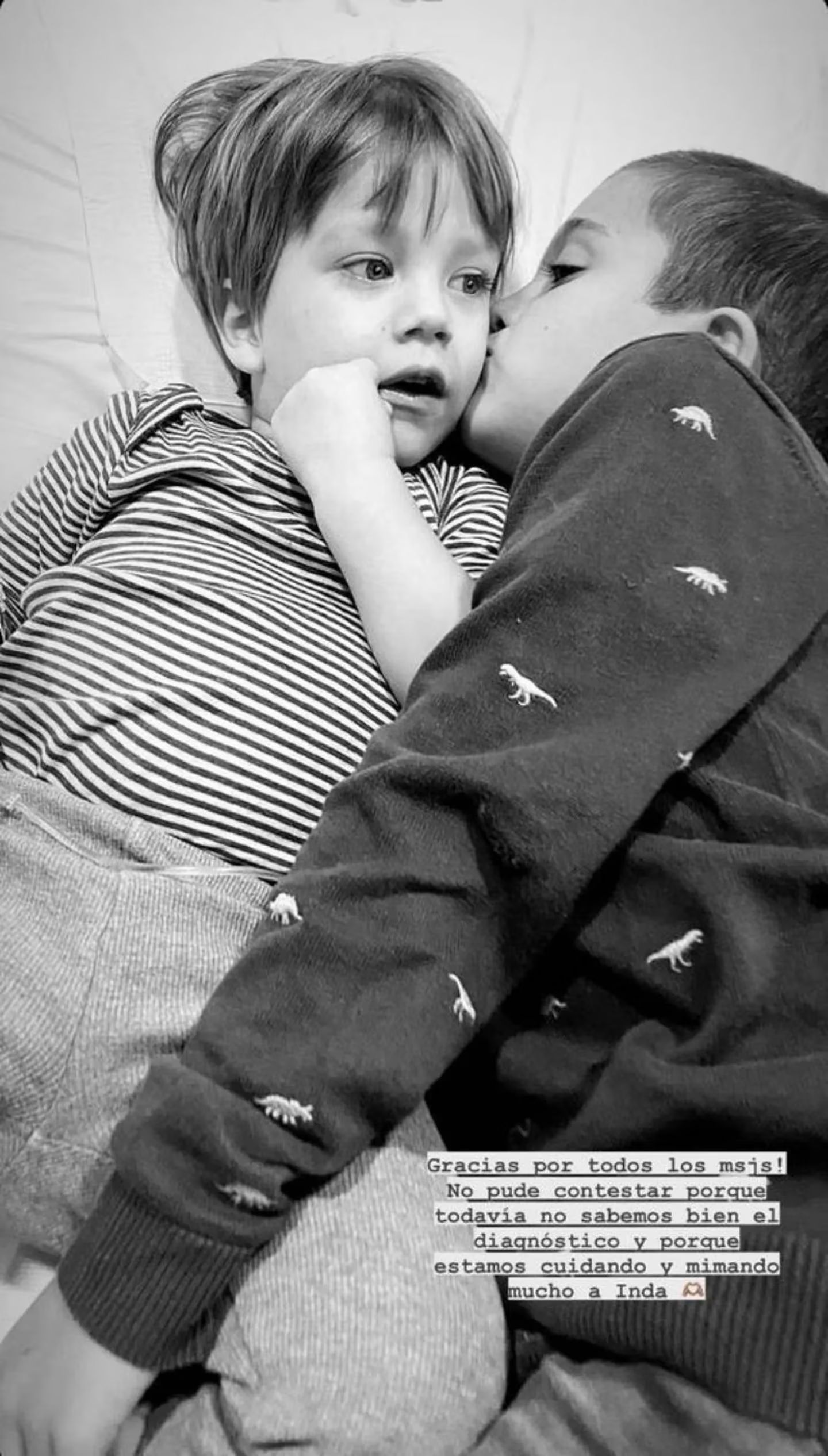 Luego, en la siguiente historia de su perfil agradeció los mensajes recibidos. “Gracias a todos por los mensajes. No pude contestar porque todavía no sabemos bien el diagnóstico y porque estamos cuidando y mimando mucho a Inda”, expresó.