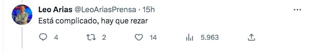 Más adelante, publicó otro tuit en el que simplemente mencionó la gravedad de la situación: "Está complicado, hay que rezar".