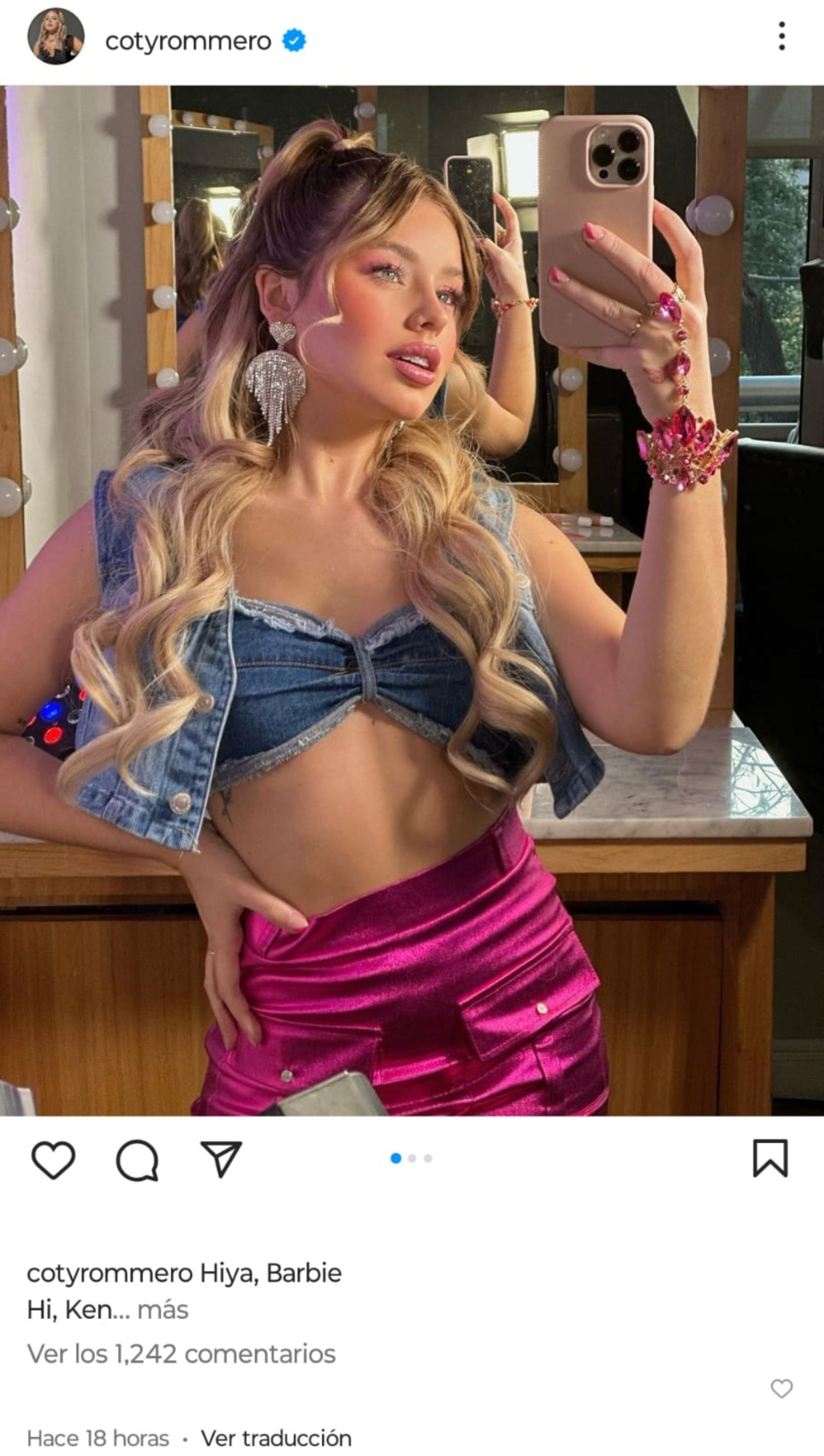 Los usuarios de la red social de fotografía se sorprendieron al ver el parecido entre Coti y Barbie y lo expresaron en los comentarios: "Vos en el papel de Barbie serías un 10"; "Nuestra Barbie argentina"; "Vos tendrías que haber sido Barbie, no podés ser tan perfecta"; escribieron algunas internautas en el posteo de Coti Romero.