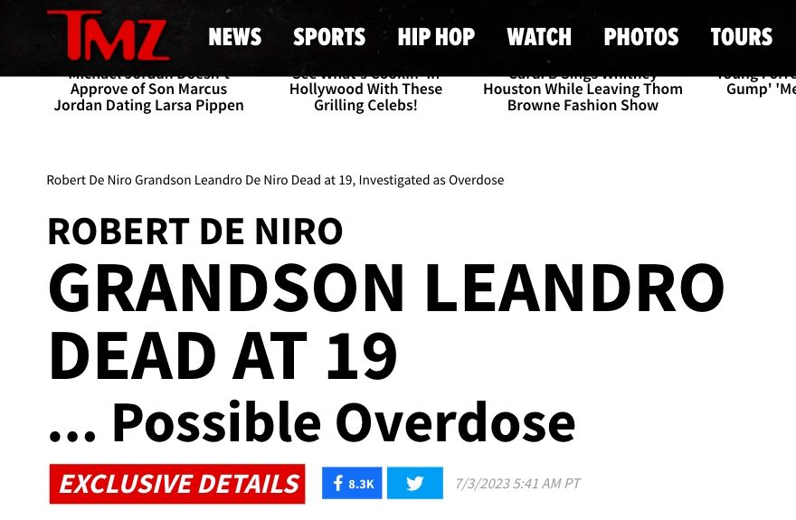 La noticia sobre la inesperada muerte del nieto de Robert De Niro conmocionó este lunes al mundo de Hollywood. Leandro De Niro Rodríguez, hijo de Drena De Niro, falleció a los 19 años.