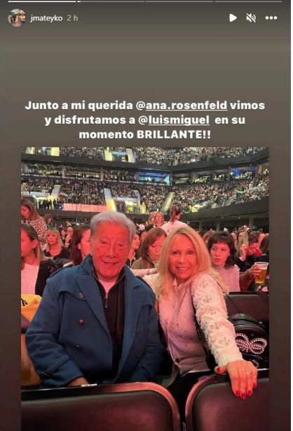 En esa storie, Juan Alberto colgó una imagen de los dos sonrientes y le agregó un texto interesante al escribir: “Con mi querida Ana Rosenfeld. Empieza el show”. Mientras que Ana también devolvió la buena onda: “Que placer ver al gran y único Luis Miguel con mi querido amigo. Gracias por la invitación”.