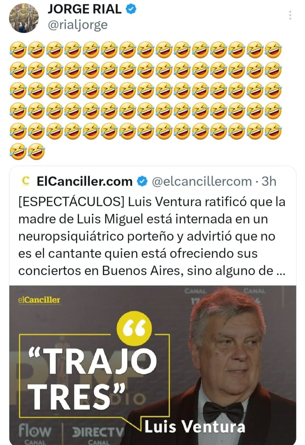A ello se subió Jorge Rial que, en su perfil de Instagram, compartió un tuit de Luis Ventura y le agregó 77 emojis de caritas riéndose. No tardaron en llegar los comentarios de los usuarios apoyando la burla del periodista: “En esta te doy la razón. Es un delirante y alta obsesión tiene con Luis Miguel”; “La misma familia de la mujer lo desmintió. Este hombre ya no sabe qué hacer para seguir vigente”; “Amo fuerte a Ventura y la obsesión que tiene con Marcela Basteri. SO VO”; “Así y todo le creo más a él”, fueron algunos de los más vistos.