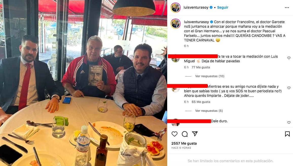 Mañana martes ambos colegas deberán verse las caras y para sumarle condimento al encuentro fue el propio Ventura quien compartió en sus redes sociales un particular posteo. En la imagen se lo ve al periodista sosteniendo el libro escrito por Rial y expresó: "Con el doctor Francolino y el doctor Garcete nos juntamos a almorzar porque mañana voy a la mediación con el Gran Hermano. Y se nos suma el doctor Pascual Fariselo... juntos somos más!! QUERÍAS CANDOMBE? VAS A TENER CARNAVAL".