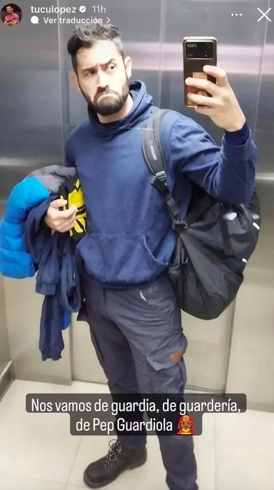 En la imagen se lo puede ver al locutor dentro del cuartel junto a sus compañeros de equipo, y también contó que ya empezó a realizar guardias. "Nos vamos de guardia, de guardería, de Pepe Guardiola", contó con el humor que lo caracteriza.