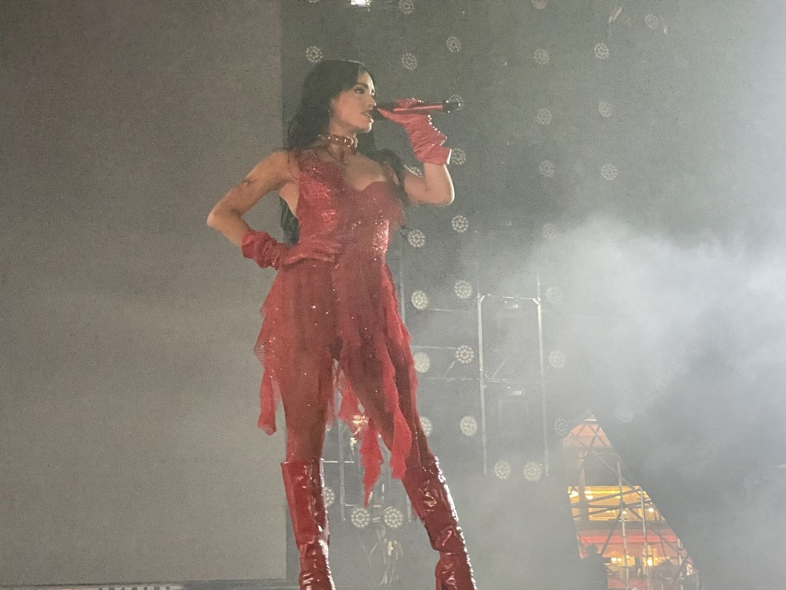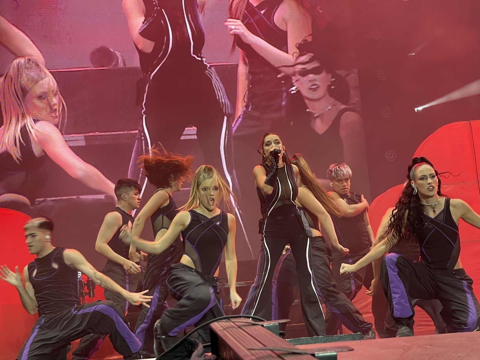 Moria previo al show de Lali aparece en pantalla gigante y se refiere a la cantante como “una genia que hicimos un tremendo podcast y arrasa en Spotify. Gracias Lali por haberme convocado al Quienes son, que la disfruten y sigan disfrutando de mi Spotify”. La encargada de darle pie a Lali para que ingrese al escenario es Juliana Gatas, cantante de Miranda! Juliana Gattas: “llega ella. La vi luchar y defender su música. Paso una década de hacer lo que se le canta y ahora está aquí con ustedes: Lali”.