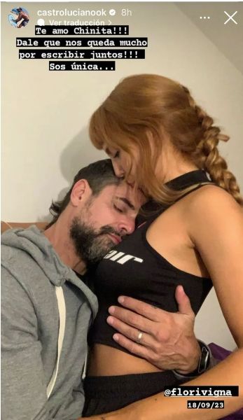 Todo se remite a una storie en la que el actor lucía abrazado a la bailarina, a la altura del vientre, en una postura muy romántica y a la que le agregó como texto: "Te amo Chinita!! Dale que nos queda mucho por escribir juntos!! Sos única…”.