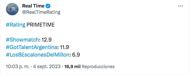 En síntesis, el regreso de Tinelli a la televisión fue más que auspicioso. El Bailando 2023 lideró en su primera emisión la noche televisiva. Además, por primera vez en la historia América lideró el prime time de la televisión abierta. En total, el certamen de baile alcanzó picos de 14.7 puntos de rating, superando a sus fuertes competidores como Got Talent (Telefe) y Los 8 escalones (El Trece).