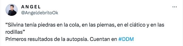 Según compartió Ángel de Brito en sus redes sociales, los primeros resultados de la autopsia a la modelo determinaron que "Silvina tenía piedras en la cola, en las piernas, en el ciático y en las rodillas", según información vertida en el programa El Diario de Mariana (El Trece).