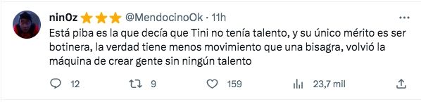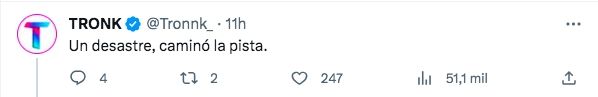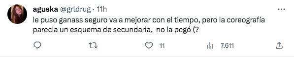 Como era de esperarse, las redes sociales también dieron su veredicto. "Un desastre, caminó la pista"; "Mejor que se dedique a cuidar a sus hijos"; "Le puso ganas seguro va a mejorar con el tiempo, pero la coreografía parecía un esquema de secundaria, no la pegó"; "Bailó horrible, pero me gusta la buena onda que tiene", fueron algunos de los comentarios que pudieron leerse en Twitter.