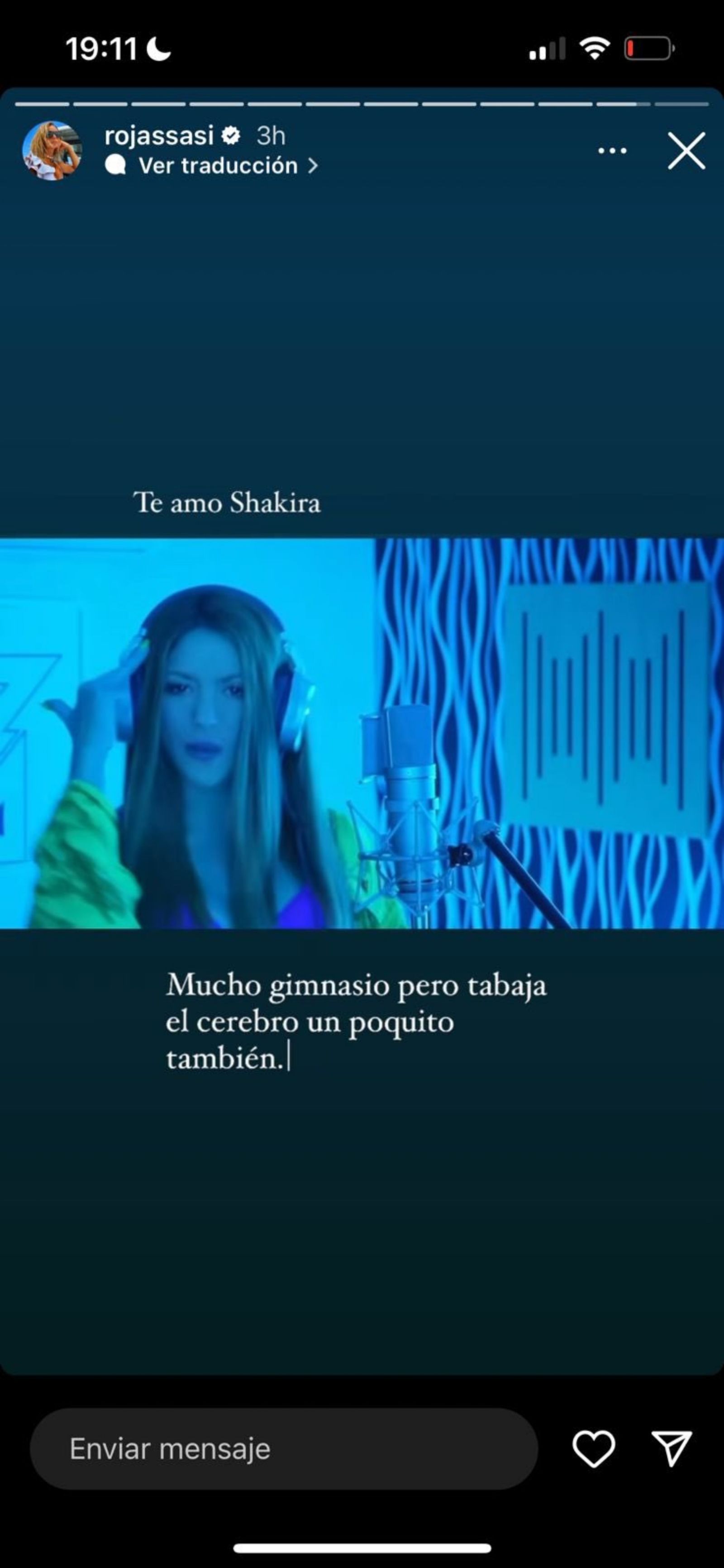 Además, la actriz reveló porqué subió la historia del tema musical de Shakira y Bizarrap: "Me vine en el avión y tenía todo el tiempo esa frasecita y me pareció divertido ponerlo". "Pero se lo dedicaste a él...", dije el cronista. "Me vine re caliente y me venía ese coso así", le contestó Sabrina Rojas.