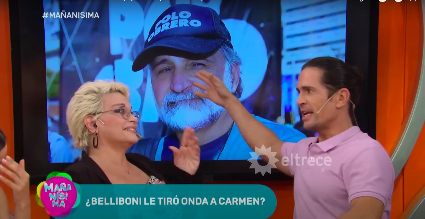 Al escucharlo, Diego Ramos reconoció: "Estamos en franco movimiento buscándole novio a Carmen, ya le pregunté edades, profesiones, todo. Le iba a preguntar ahora si saldría con un gremialista, y antes de decir ‘agua va’, ella me dice ‘me gusta Belliboni’".