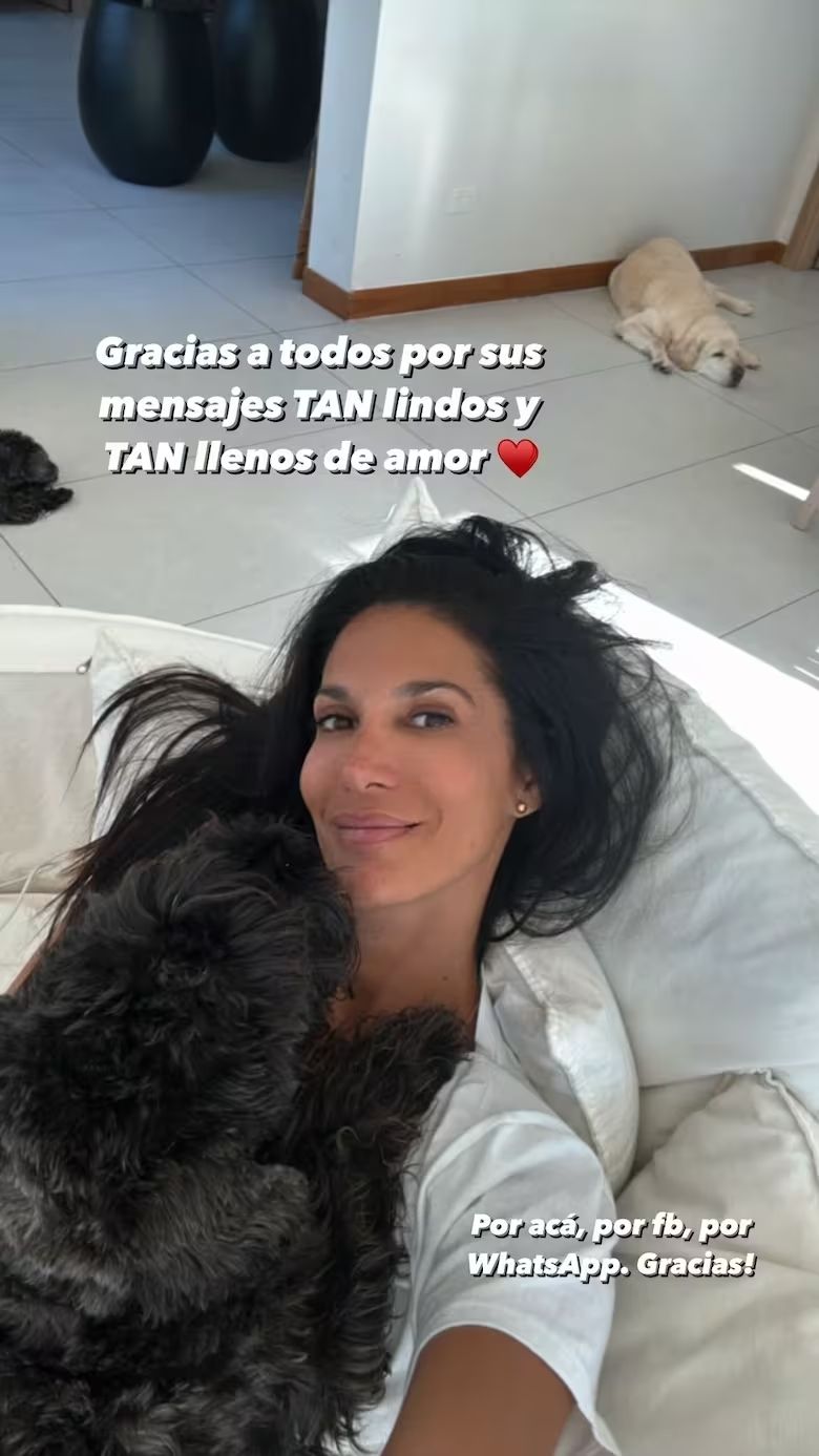 “Gracias a todos por sus mensajes tan lindos y tan llenos de amor. Por acá, por Facebook, por WhatsApp. ¡Gracias!”, escribió Silvina Escudero sobre una foto en la que posó sonriendo y rodeada de sus amados perros. La artista retomó su actividad en las redes sociales, tras pasar algunos días alejada procesando el duelo.