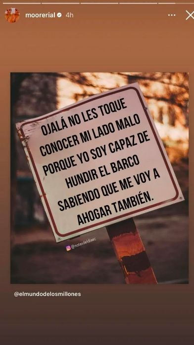 En este contexto, Morena compartió un llamativo posteo sin especificar destinatario, aunque bien podría estar dirigido a Jorge. "Ojalá no les toque conocer mi lado malo porque yo soy capaz de hundir el barco sabiendo que me voy a ahogar también", compartió categórica en sus redes sociales.