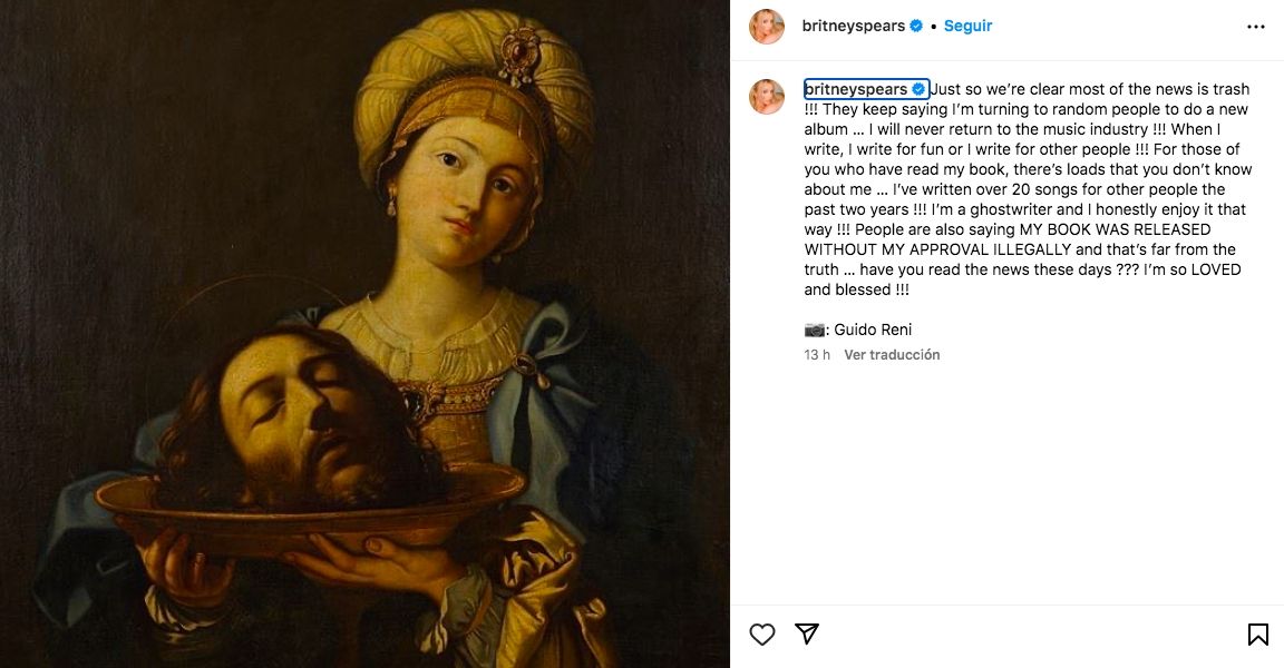 La estrella pop Britney Spears aseguró a través de una publicación en sus redes sociales que "nunca" volverá a subirse a un escenario ni a grabar un disco, tras salir al cruce de una información que señalaba que se encontraba trabajando en nuevo material.