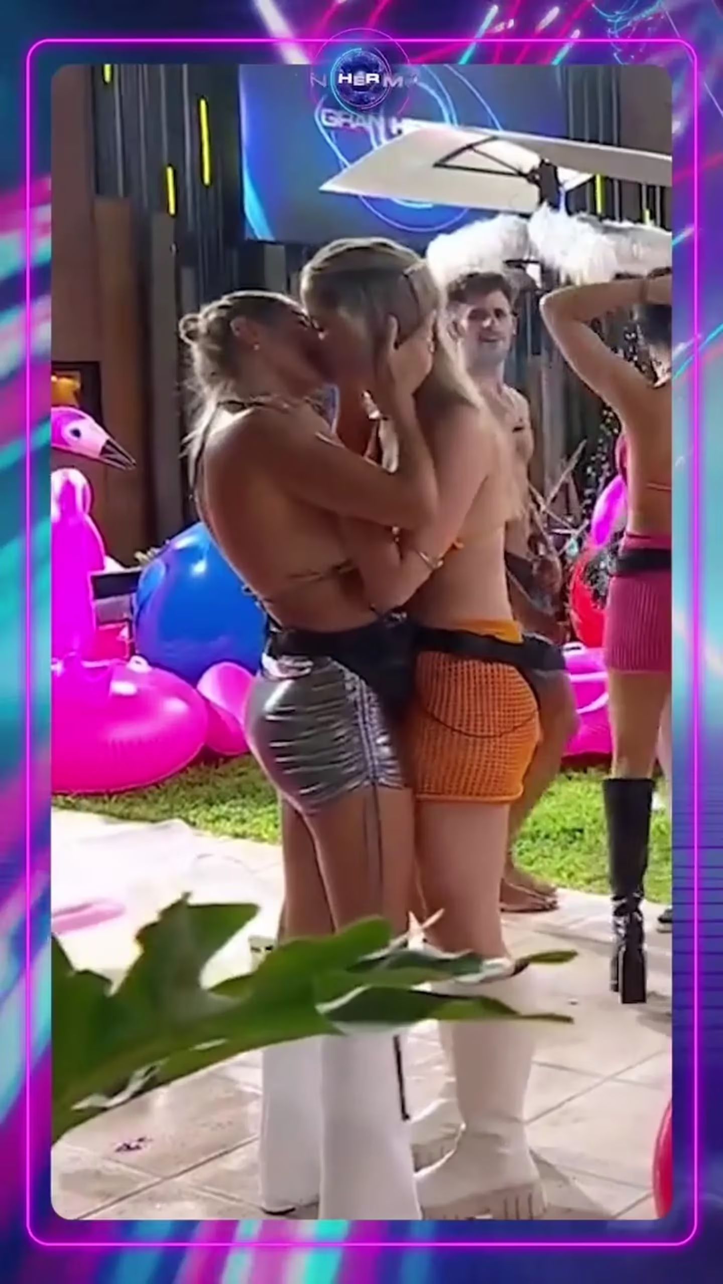 Todo se dio dentro de la pool party que tuvieron los hermanitos este viernes por la noche. Las concursantes bailaban muy a gusto, bailaban muy pegadas y tomaron por sorpresa a todos cuando se besaron apasionadamente cerca de la pileta.