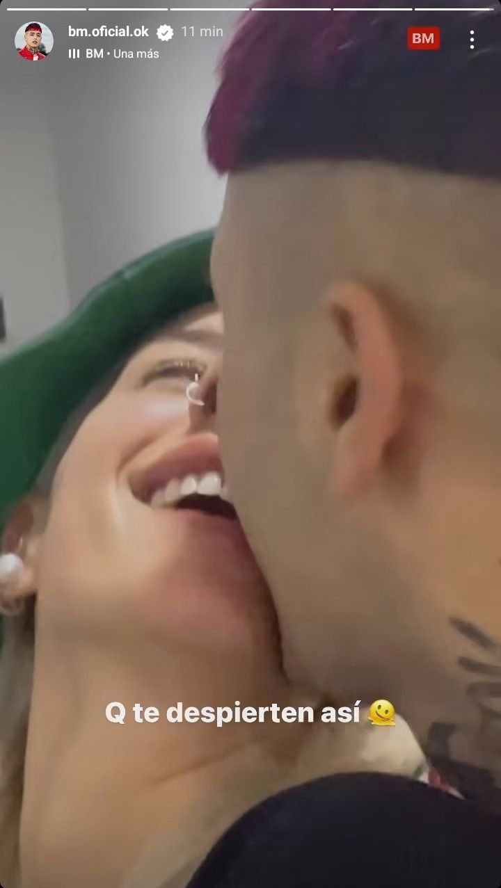 Se trata de BM, reconocido artista del género RKT y con éxitos como M.A. (Mejores Amigos). "Que te despierten así", escribió en su cuenta de la red social, mientras se besan y sonríen muy enamorados. El video original fue publicado por el cantante -de nombre real Brian Joel Martignone-, mientras que ella lo reposteó en su perfil.