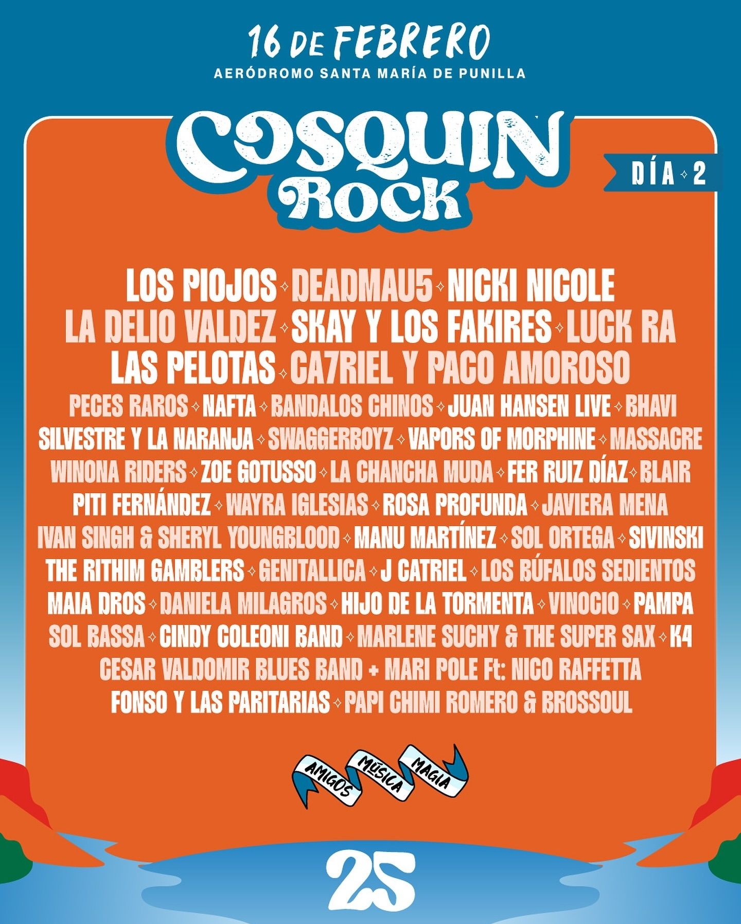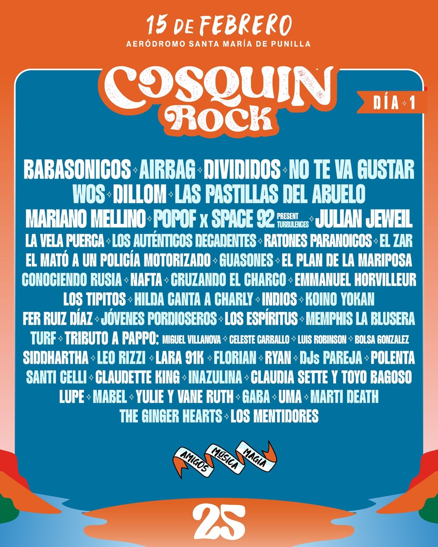 El Cosquín Rock se prepara para su 25º aniversario que se llevará a cabo el 15 y 16 de febrero de 2025 en el Aeródromo de Santa María de Punilla. La cuenta regresiva ya comenzó, este lunes se reveló la grilla de artistas que dirán presentes y hoy se develó cómo será el lineup de cada día.