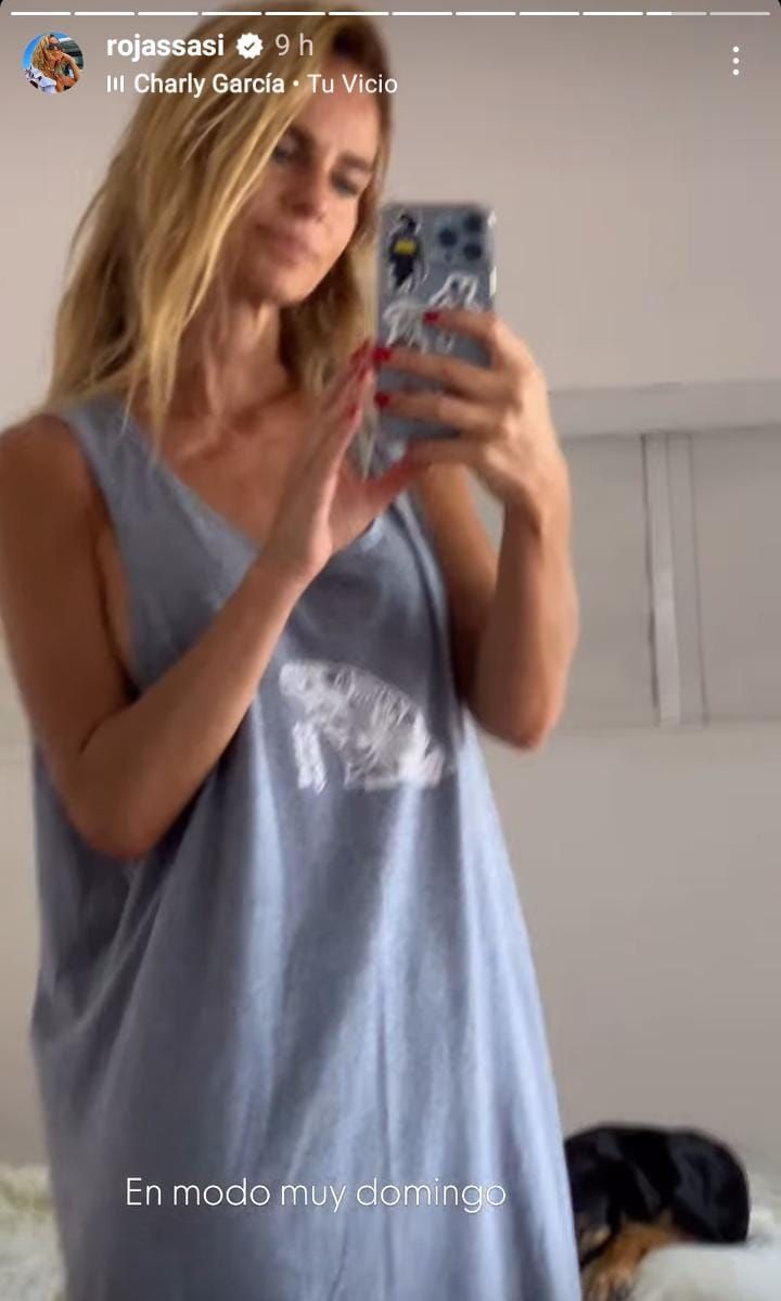 Ahora, mientras disfrutaba de un plácido domingo, subió una historia de una foto suya en la que luce una remera que despertó todas las alarmas. Acompañada de la canción de Charly García, "Tu vicio", Sabrina Rojas se mostró con una musculosa que perteneció a Luciano Castro.