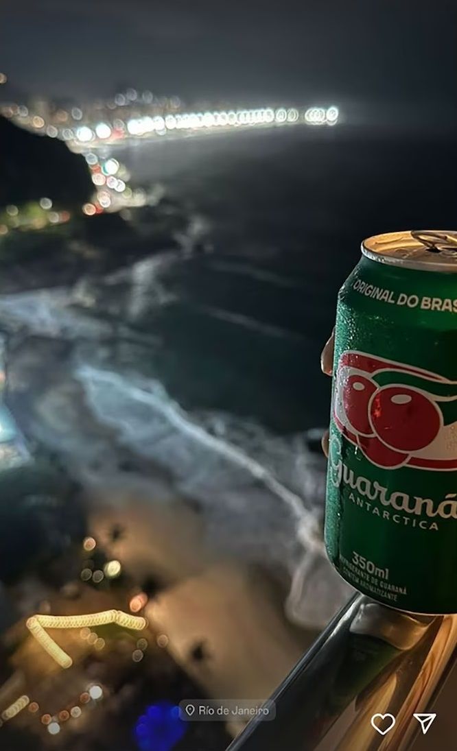 Wanda sacó una foto en la que se ve una típica bebida brasileña, con un fondo desenfocado que deja ver las luces de la ciudad. En consonancia, L-Gante también mostró la vista de su habitación, evidentemente en uno de los pisos más altos del hotel. “Allá está el Cristo Redentor, ahí la playa, acá te dan escabio gratis. Jamaica, saludo para el barrio” agregó también, fiel a su estilo.