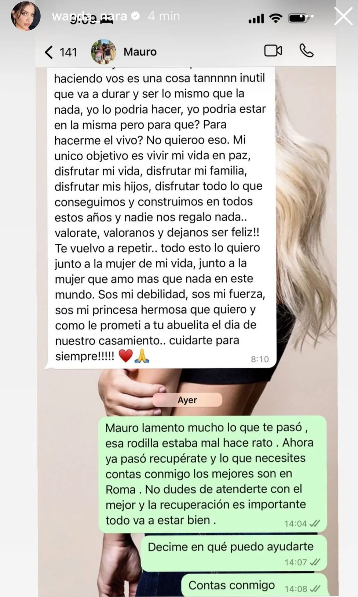 Por último, la actual novia de L-Gante le dijo a Mauro Icardi: "No dudes en atenderte con el mejor y la recuperación es importante. Todo va a estar bien. Decime en qué puedo ayudarte. Contás conmigo".