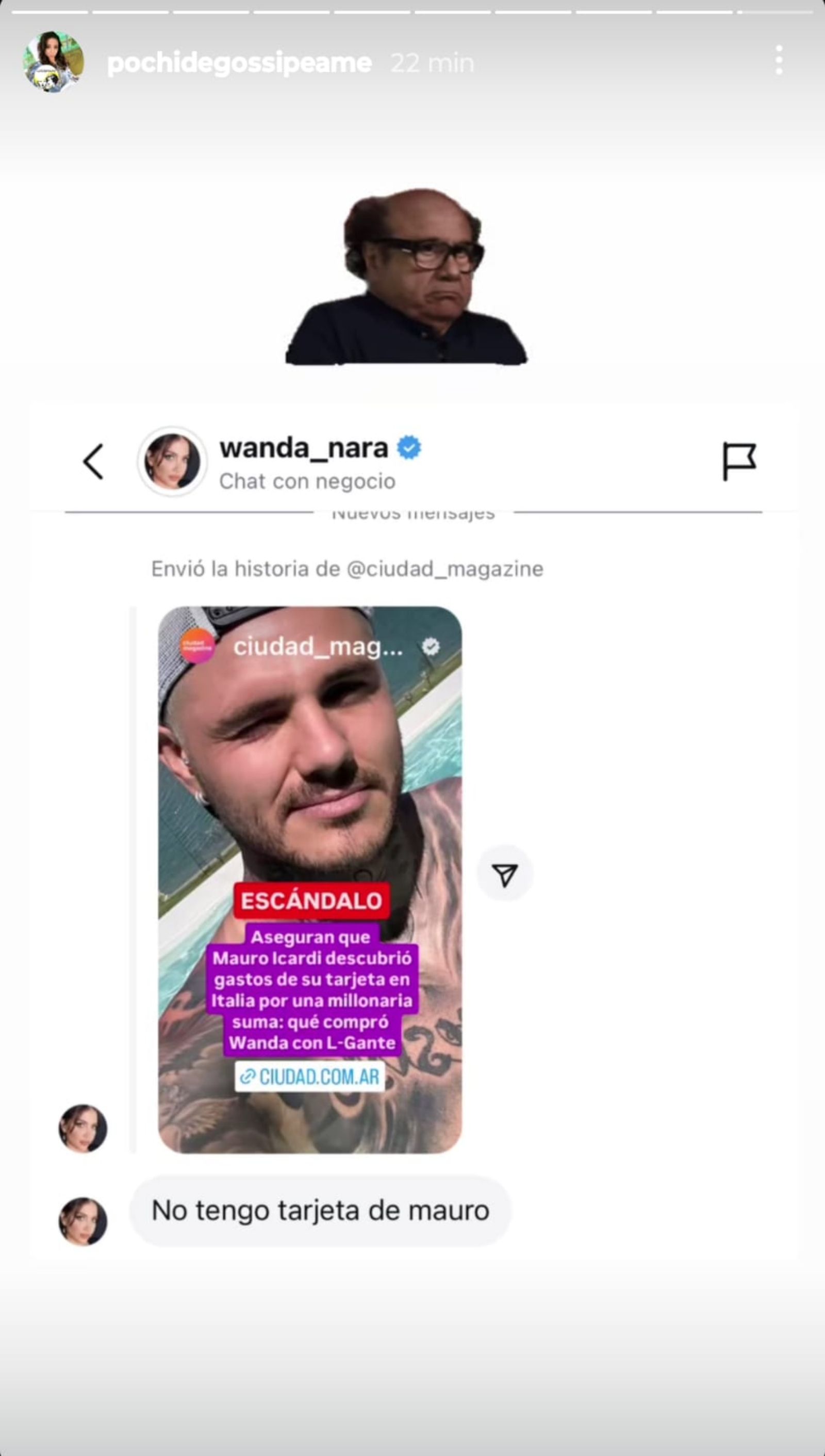 No obstante, este viernes por la mañana, Marcia Frisciotti, dueña de la cuenta de Instagram Gossipeame (@Pochidegossipeame) y panelista de Empezar el día, compartió la captura de pantalla de un chat donde Wanda Nara desmiente haber utilizado la tarjeta del deportista.