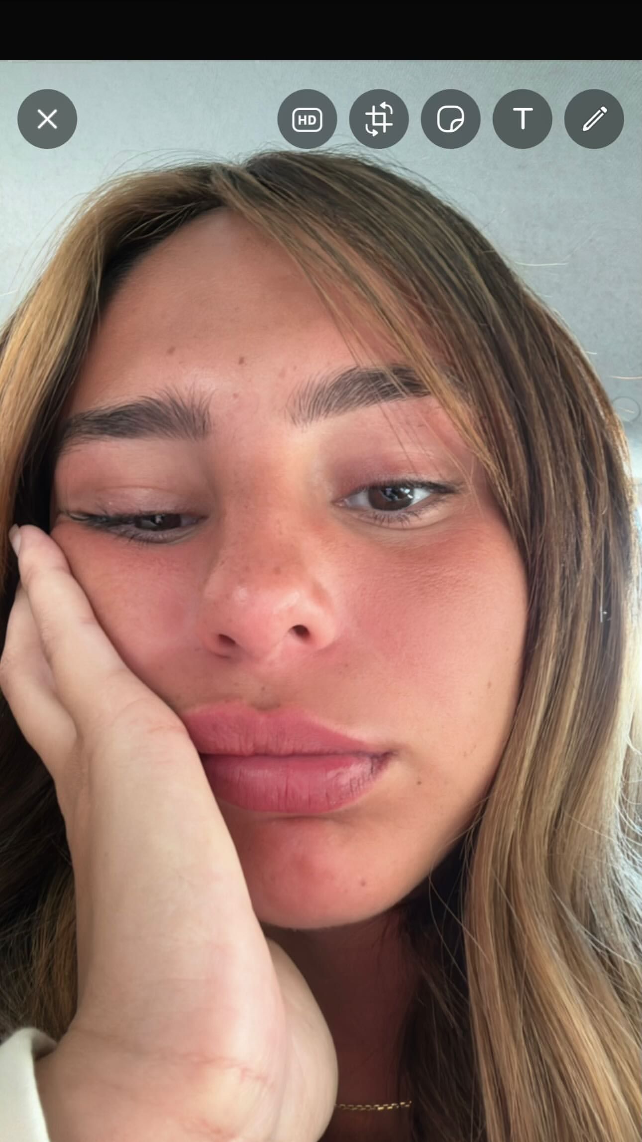 En la imagen, la más joven de las hijas Tinelli posó muy cerca de la cámara, solo mostrando su rostro limpio de maquillaje parcialmente cubierto por su mano. El detalle que cautivó fue el tono rojizo de su cara, que delata una tarde pasada al lado de la pileta aprovechando el calor que llegó con los últimos días del año.