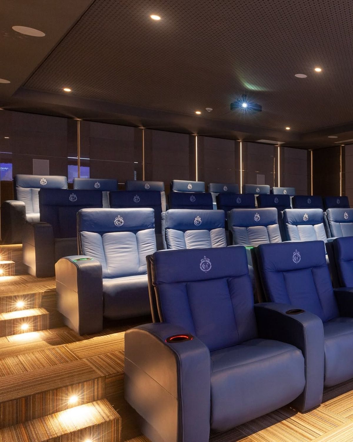 La sala de cine es otro de los atractivos, con capacidad para 28 personas. Sus butacas de cuero holandés reclinables, puertos USB y un sistema que mantiene las bebidas frías, hacen que ver una película sea algo realmente especial.
