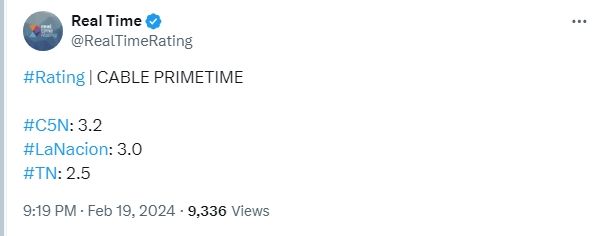 El programa arrancó con un piso de 2.5 puntos, una cifra que no pudo remontar. Mientras tanto, sus principales competidores lo superaron ampliamente: C5N llegó a 3.2 y LN+ 3 puntos.