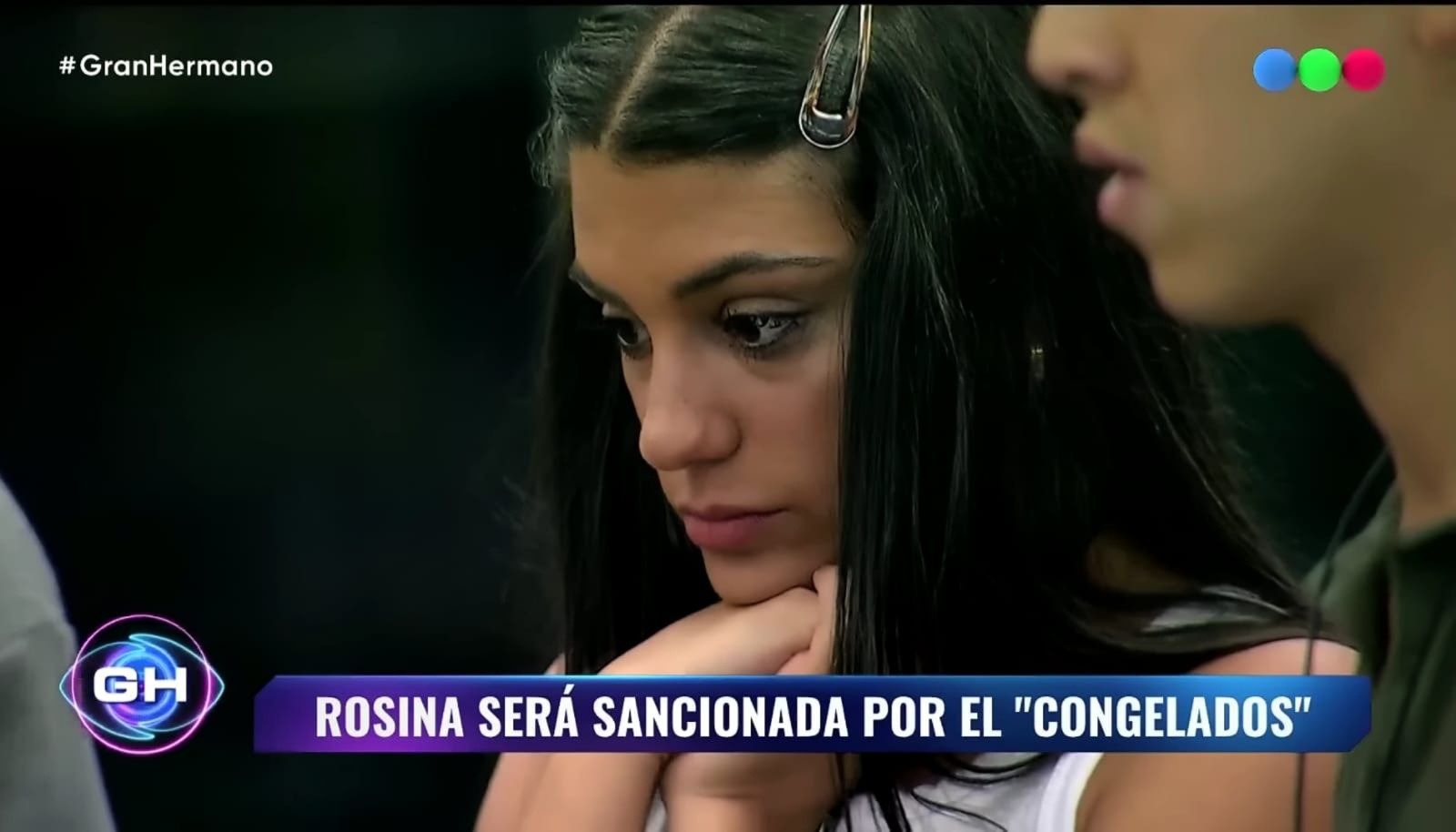 Tras el anuncio, la voz de Big Brother apareció en la casa para hablar sobre la falta de la participante y su respectiva sanción: "Quiero aclararles que las reglas de 'El Congelado' son muy claras. No se puede reaccionar, hablar, etc. Rosina, lamentablemente, a tu madre le has preguntado por 'Mágica', que es tu gatita. Esto significa sanción. Mañana, no vas a poder participar de la prueba del líder. Tampoco vas a poder participar por la casa".