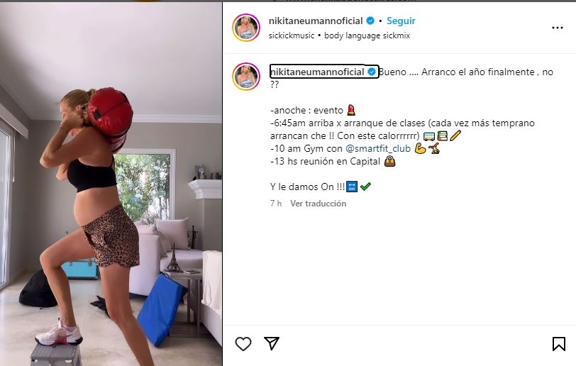 "Bueno …. Arrancó el año finalmente ¿no? Anoche: evento; 6:45 am arriba por arranque de clases, cada vez más temprano arrancan che. Con este calorrrrrr. 10 am gym, a las 13 reunión en Capital. Y le damos con todo", expresó la modelo junto al video que compartió en su cuenta de Instagram.