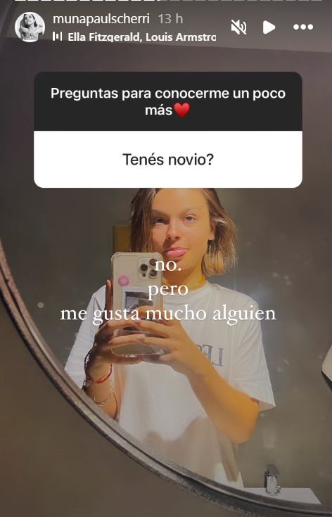 “¿Tenés novio?”, quiso saber un usuario y ella respondió, pícara, con una selfie frente a un espejo sacando la lengua y una canción de fondo de Ella Fitzgerald y Louis Armstrong: “No, pero me gusta mucho alguien”.