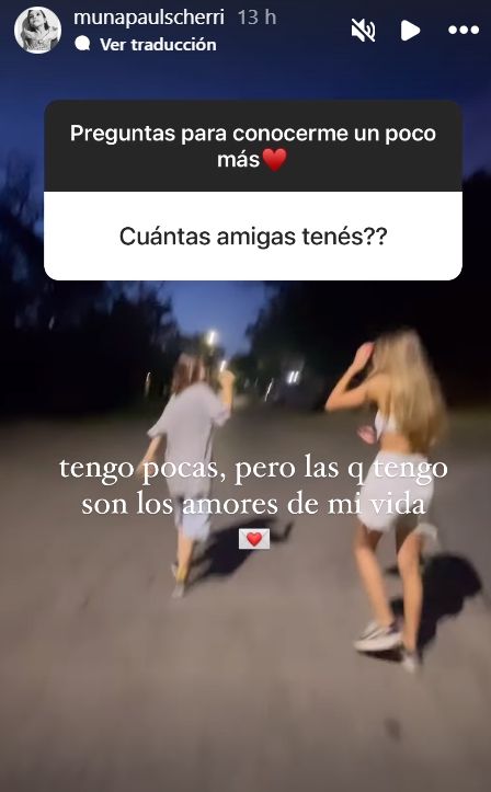 Y en las últimas horas, Muna se abrió por completo con sus seguidores de Instagram al dejar una cajita de preguntas en sus historias para que la conozcan “un poco más”. En ese ida y vuelta con los usuarios, la hija mayor de Agustina Cherri y Gastón Pauls reveló muchos datos personales hasta ahora desconocidos.