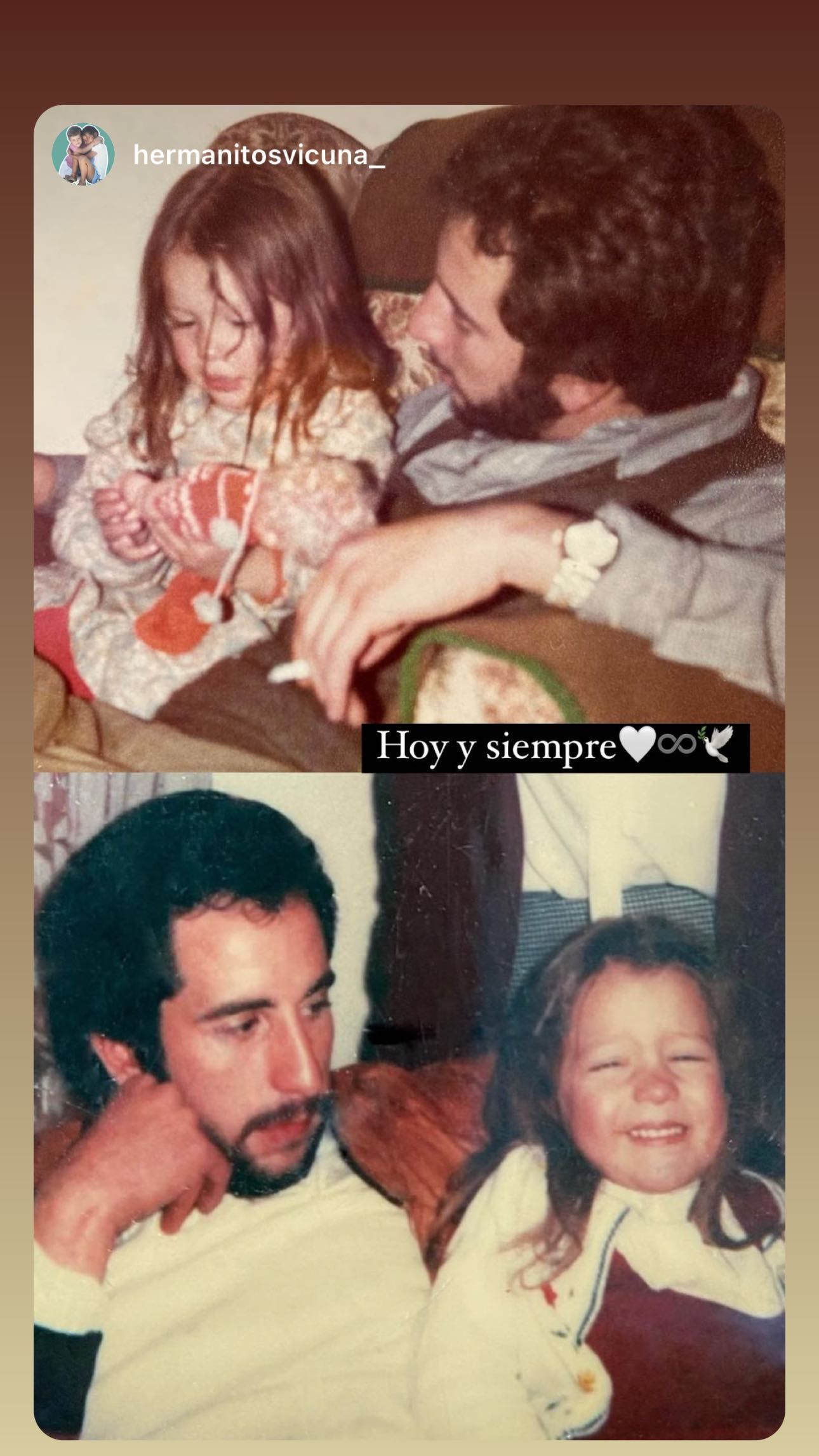 La modelo también compartió en historias de Instagram algunas fotos que subió su hermano Leonardo para homenajear a su papá y compartió una serie de fotos familiares. “Viejo querido, qué pronto te fuiste”, expuso junto a las instantáneas retro.