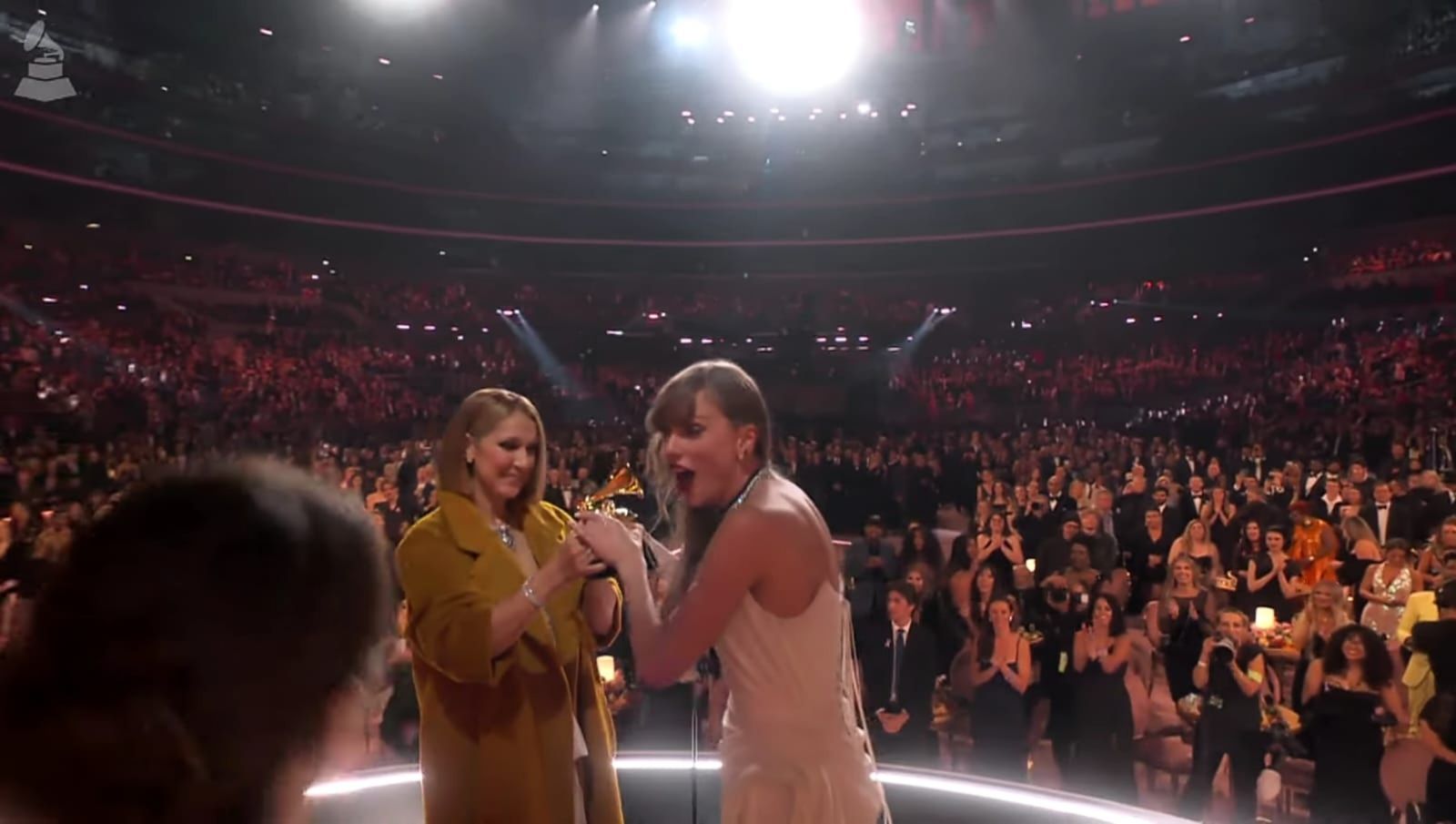 Pero este domingo, la cantante reapareció y fue en la 66ª edición de los Premios Grammy. Al ingresar al escenario, todos los artistas presentes ovacionaron a Dion y la intérprete de Happy Xmas (War Is Over) se mostró totalmente agradecida.