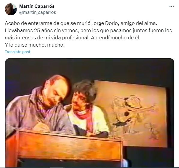 Martín Caparrós expresó: "Acabo de enterarme de que se murió Jorge Dorio, amigo del alma. Llevábamos 25 años sin vernos, pero los que pasamos juntos fueron los más intensos de mi vida profesional. Aprendí mucho de él. Lo quise mucho, mucho".
