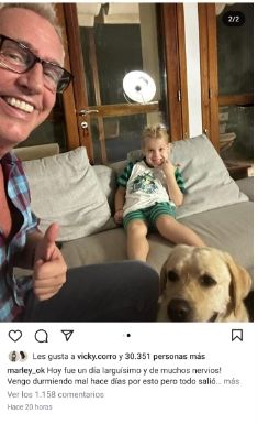 Con una publicación en su cuenta oficial de Instagram, donde lo siguen millones y millones de seguidores, el animador mostró dos fotos con Mirko, sentado en el sillón del living de su casa y con un lenguaje corporal de encontrarse en pleno reposo, pos operación.