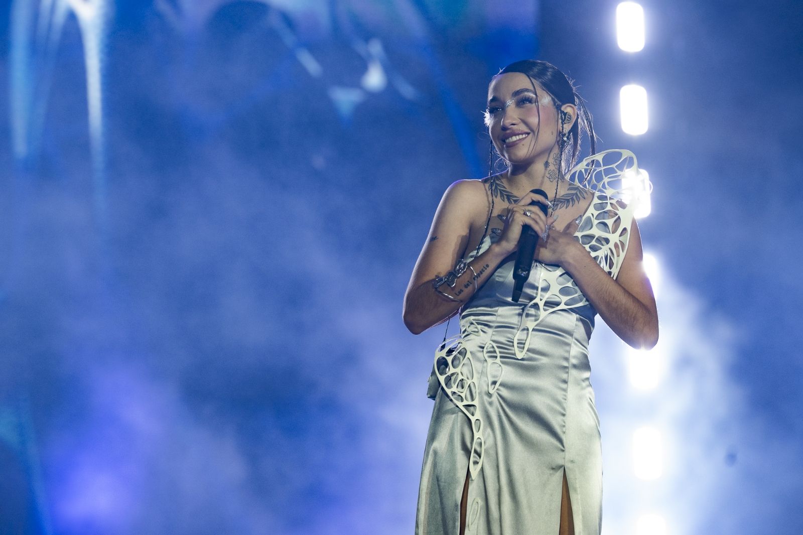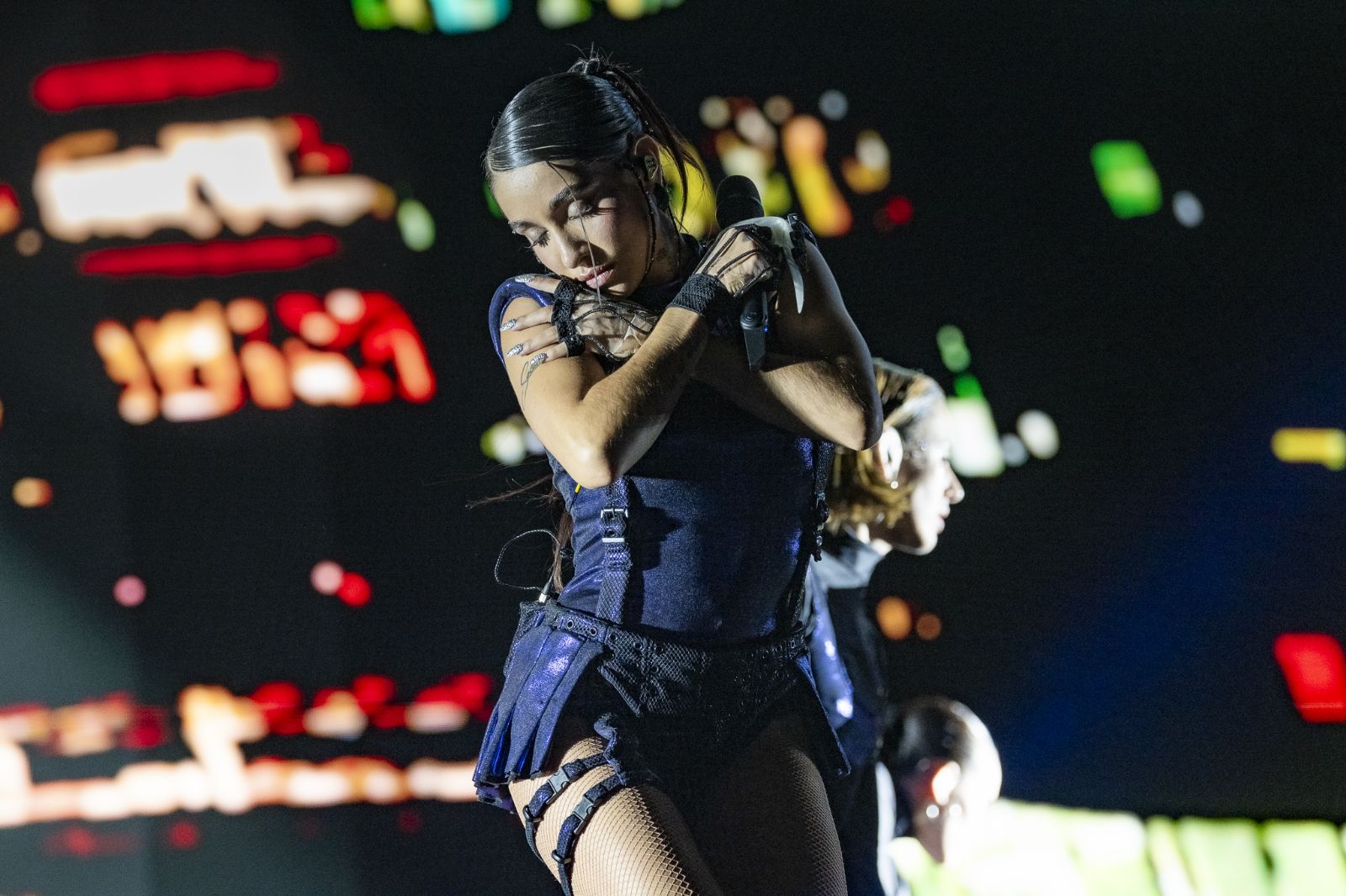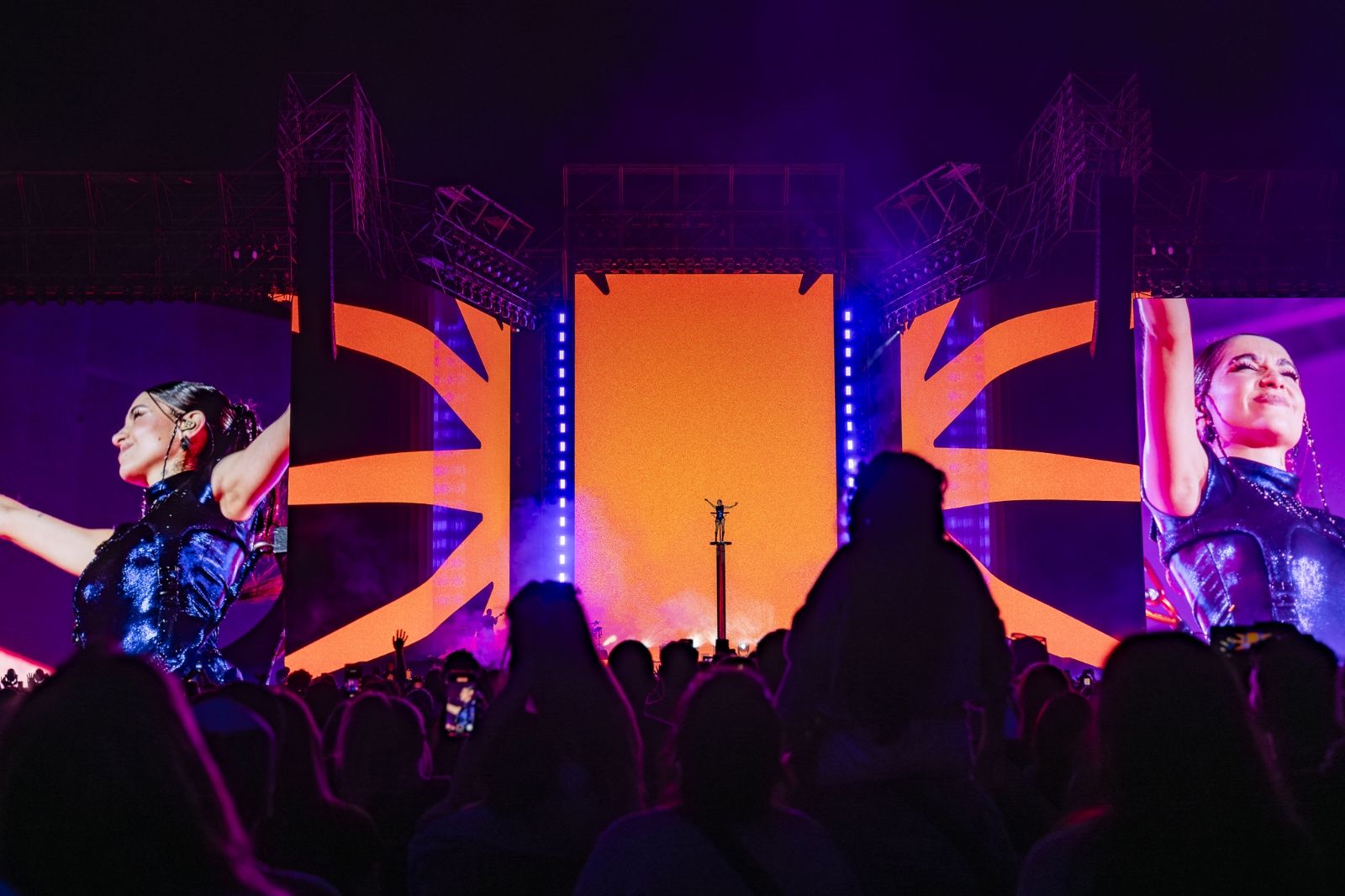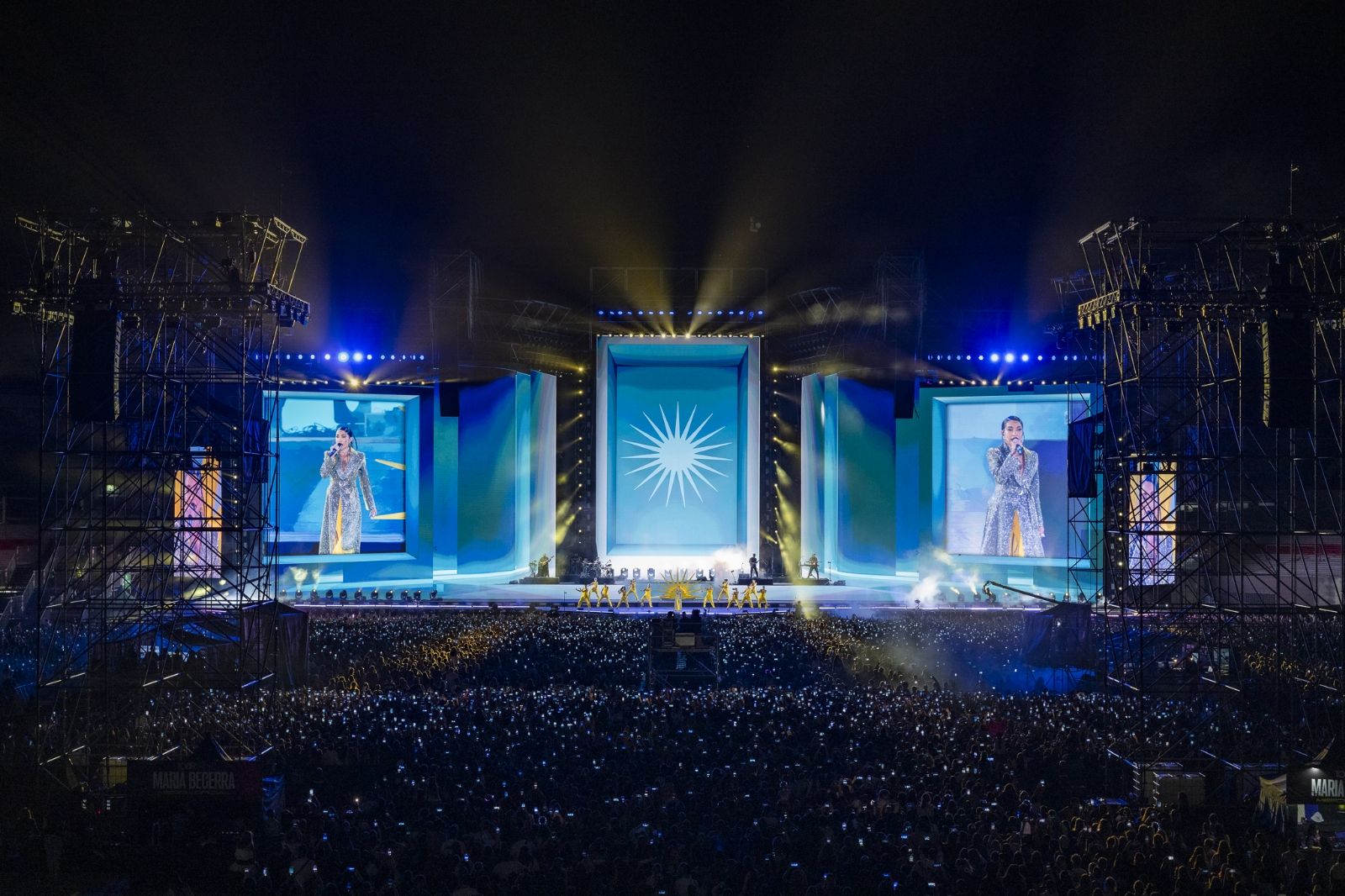 Los conciertos estuvieron a la altura de producciones internacionales, con visuales animadas y cámaras que acompañaban a Becerra para que se la viera hasta el final del estadio. Una increíble estética en los vestuarios y sus bailarines completan un escenario hipnotizante.
