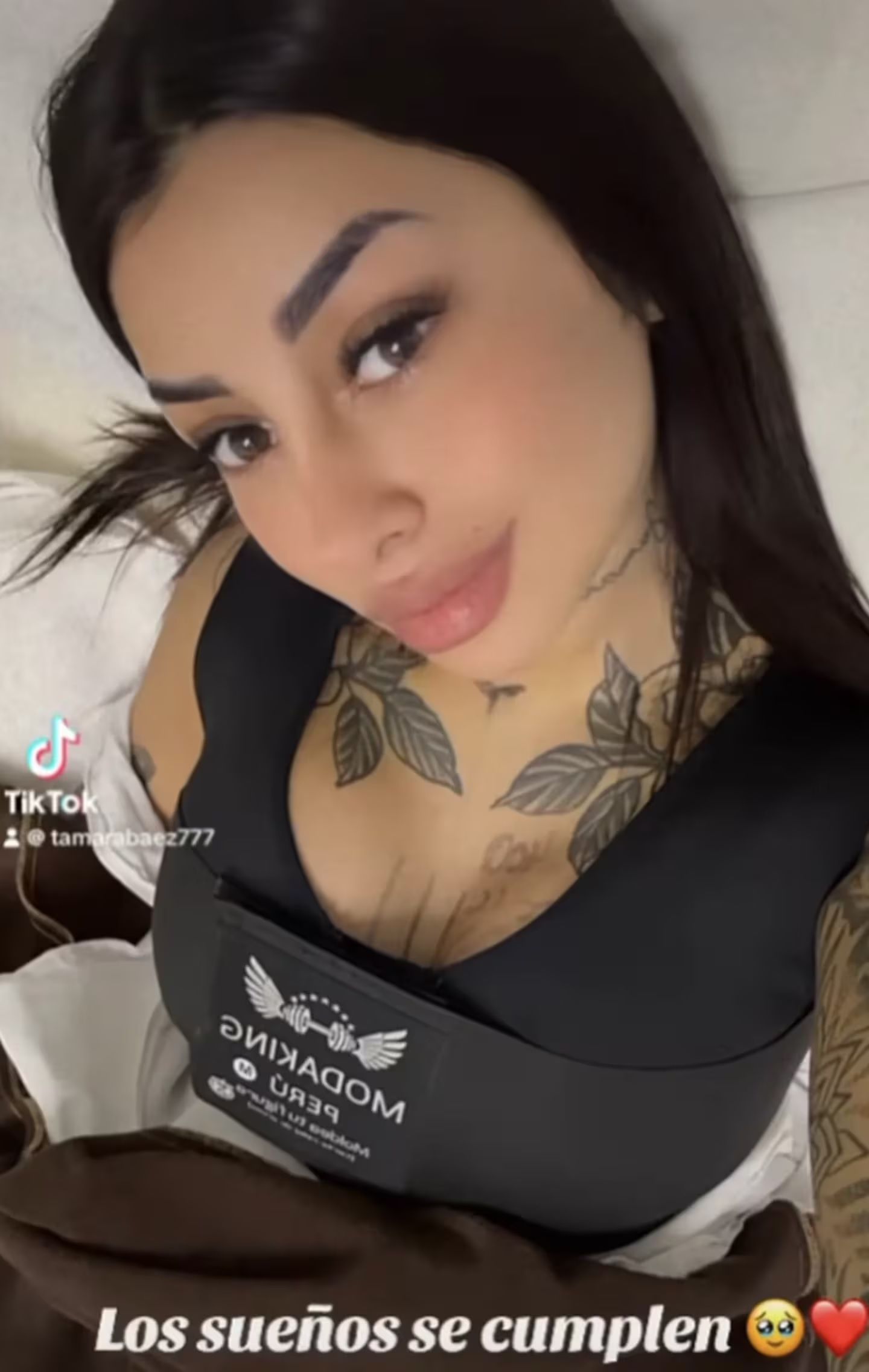 En última instancia, Tamara Báez se filmó haciendo reposo en su hogar y le reveló a sus fanáticas cómo se siente. "Gente, no puedo creer que tengo tetas", comenzó explicando mientras la emoción comenzaba a desbordarla en un profundo llanto.
