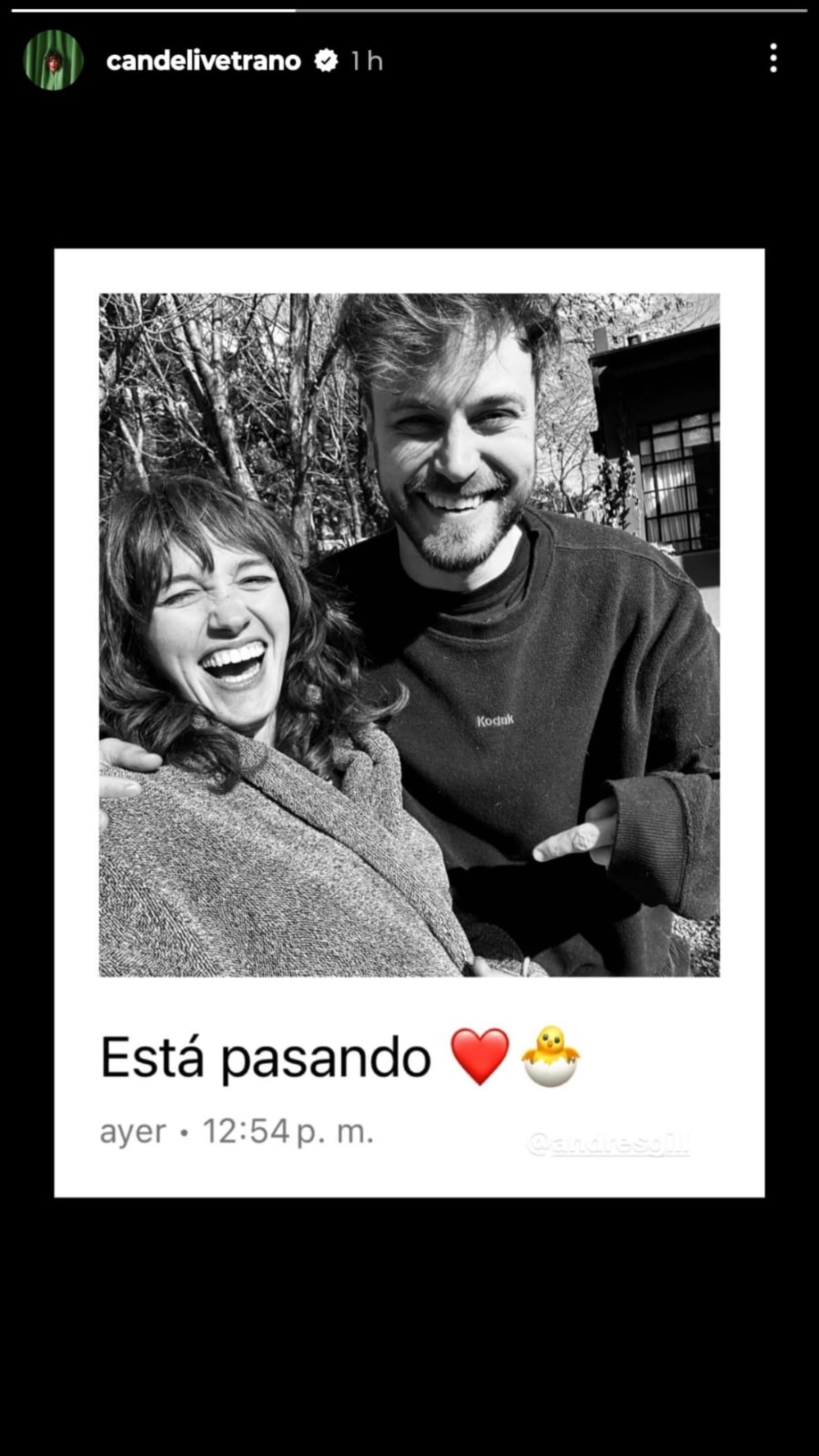 Este domingo por la mañana, la actriz compartió una emotiva foto en blanco y negro en sus historias de Instagram (@Candelivetrano) donde aparece junto a su pareja, Andrés Gil.