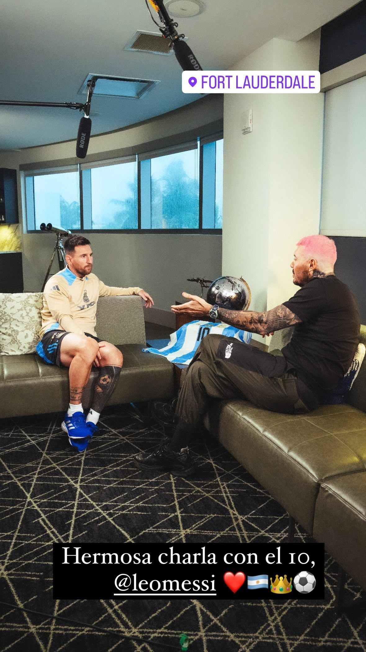 Desde sus redes sociales, Marcelo Tinelli compartió imágenes junto a Lionel Mesi, y sobre el encuentro el conductor comentó desde su cuenta de Instagram: "Fue un viaje muy cortito junto a Luciano Tirri y Fede Hoppe, para poder estar junto a él. Tuvimos una charla maravillosa, donde pasamos por todos los estados. Risas, emociones, complicidad y mucho amor en toda la conversación. Gracias querido Leo Messi por tu amistad, por tu cariño y tu respeto. Fue un placer, como siempre, estar a tu lado. Te amo. Te amamos los argentinos y todo el mundo entero. Sos crack en la cancha, como persona, y tenés esa humildad y esa grandeza que te hacen distinto. La semana que viene vamos a ver en América TV esta entrevista única, con algunas sorpresas, con 'El Rey Leo'".