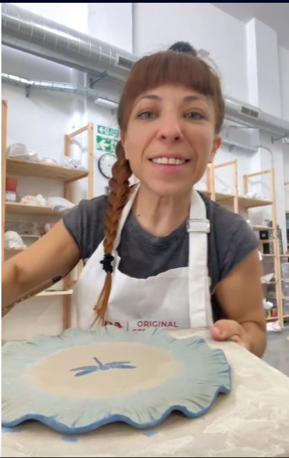 Con un video, Noelia registró una serie de instancias del proceso de creatividad, que se vincula en este caso con la creación de un plato decorado, que moldeó a su gusto y consideración, así como lo pintó con un diseño muy personal, que la moviliza y la estimula.