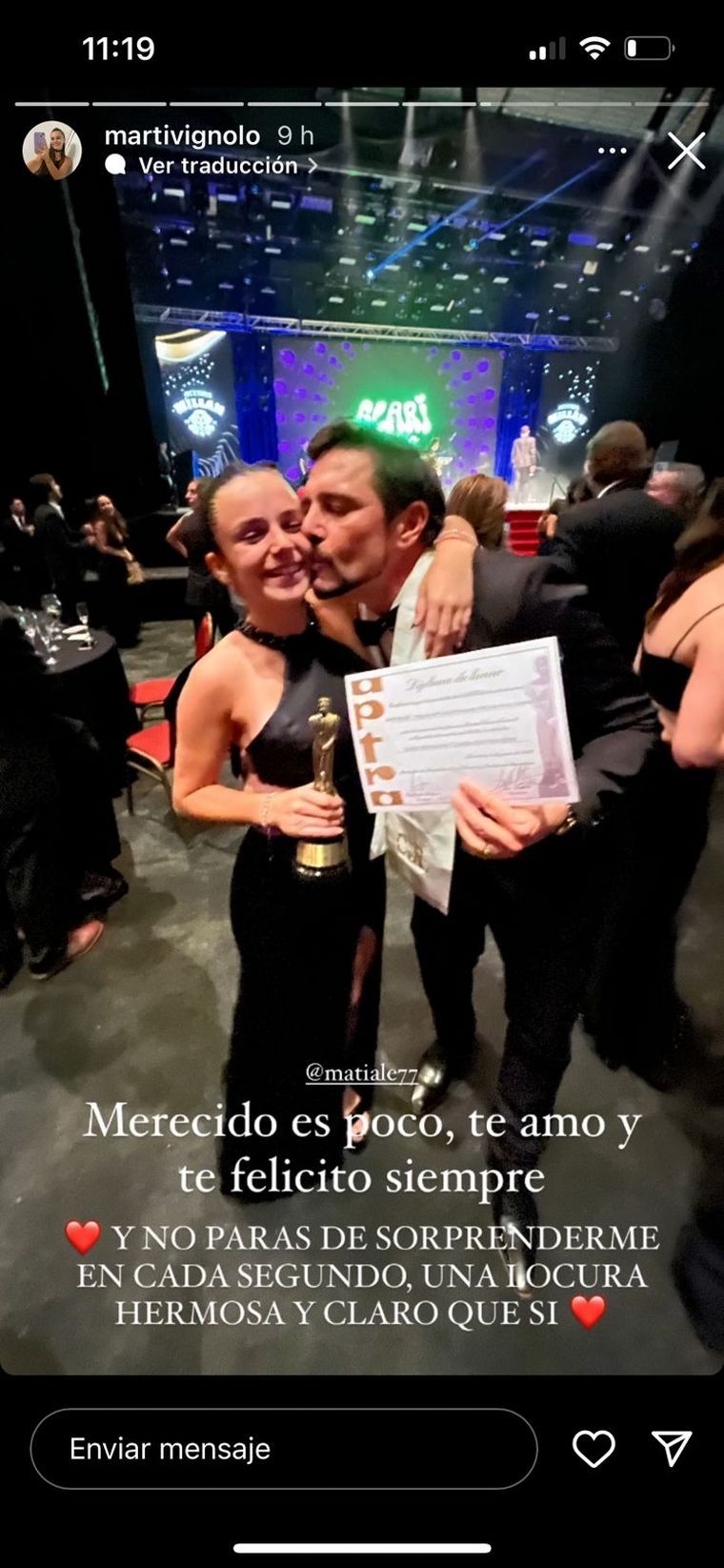 Ahora, Matías Alé fue un paso más y le propuso casamiento, en plena transmisión de los Premios Martín Fierro Federal, tras ser el ganador a Mejor Labor Animación Masculina.