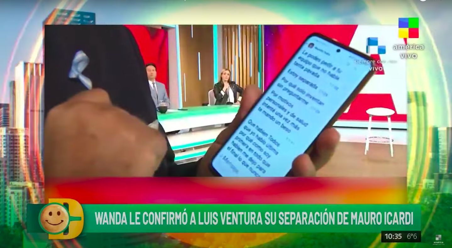 Luego de los fuertes rumores que surgieron en los últimos días, fue la propia Wanda Nara quien confirmó su separación de Mauro Icardi. La empresaria se lo contó a Luis Ventura a través de un mensaje que fue difundido en A la tarde (América). "Estoy separada", dijo la mediática.