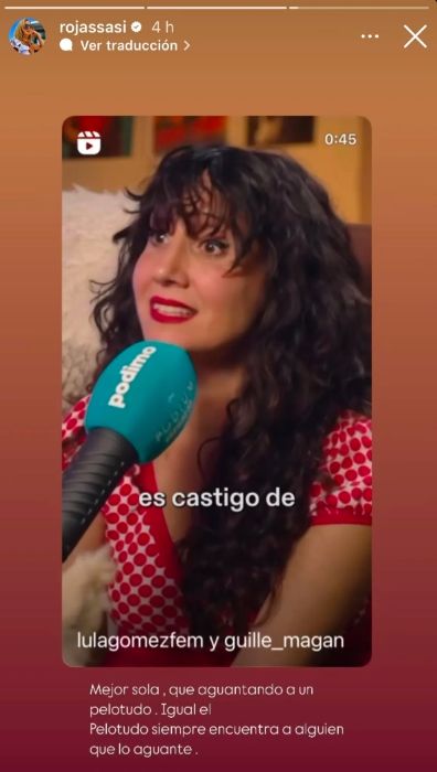 Al video, le agregó un contundente mensaje. "Mejor sola que aguantando a un pelotudo. Igual el pelotudo siempre encuentra a alguien que lo aguante", disparó Rojas sin vueltas.