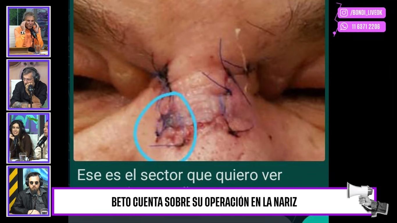"En un momento me aparece un granito en la nariz. Nada, lo que le puede pasar a cualquiera. Pero bueno, como no se iba decido recurrir a mis dermatólogos, que son los hermanos Galimberti. En un principio me dicen 'No hagamos nada, veamos su evolución'", comenzó contando en su programa Onda Beto, por el streaming de Bondi.