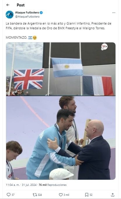 La mañana olímpica en Argentina se vivió con mucho éxtasis tras la victoria en BMX Freestyle de "El Maligno" Torres, quien ganó la primera medalla de oro para la delegación tras un fantástico desempeño en su primera pasada de la final de la disciplina.