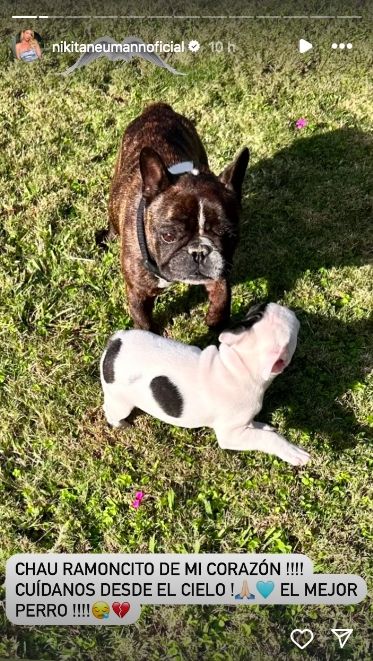 En este contexto, la modelo compartió una triste noticia: la muerte de Ramoncito, uno de sus perros. Nicole subió a su cuenta de Instagram una foto de su perrito bulldog francés junto a un emotivo mensaje: "Chau Ramoncito de mi corazón. Cuidanos desde el cielo. El mejor perro", expresó.