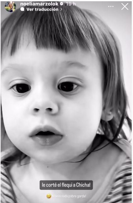 En una filmación publicada en sus historias, la bailarina mostró cómo quedó su hija y además manifestó: "Le corté el flequi a Chicha". Luego, cerró el posteo diciendo: "¡No veía nada pobre gorda!".