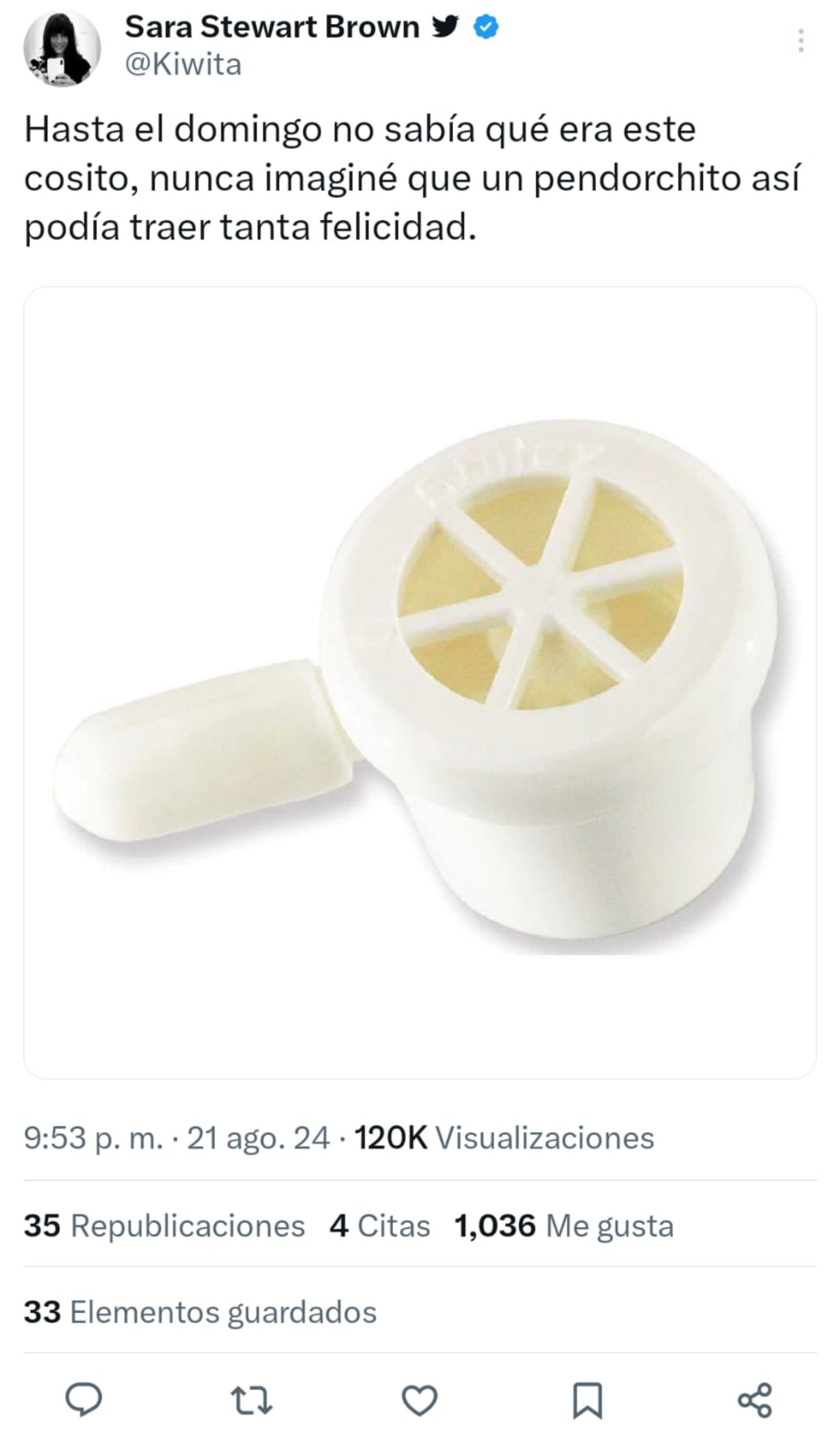 Luego, Sara explicó para qué sirve este objeto: "Twitter es servicio así que les cuento. Es una pequeña válvula que permite HABLAR a las personas con traqueostomía".